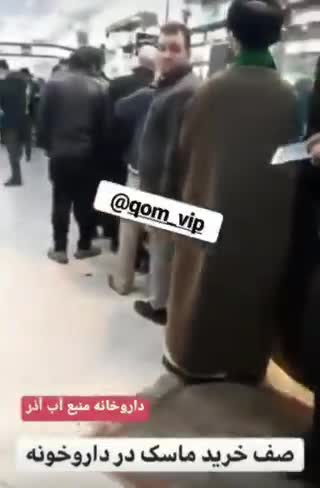 صف طولانی داروخانه ای در ‎قم برای خرید ماسک