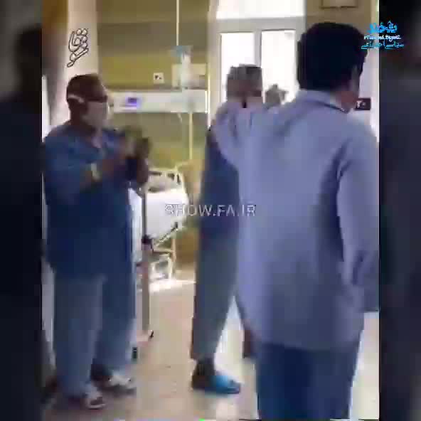 جشن ترخیص بیماران کرونا در بیمارستان علی‌اصغر شیراز
