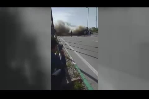 لحظه انفجار خودروی اتوبوس شرکت واحد