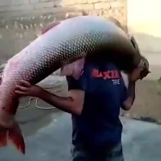 صید یک ماهی بسیار بزرگ و سنگین از رود سِیمَره در ایران