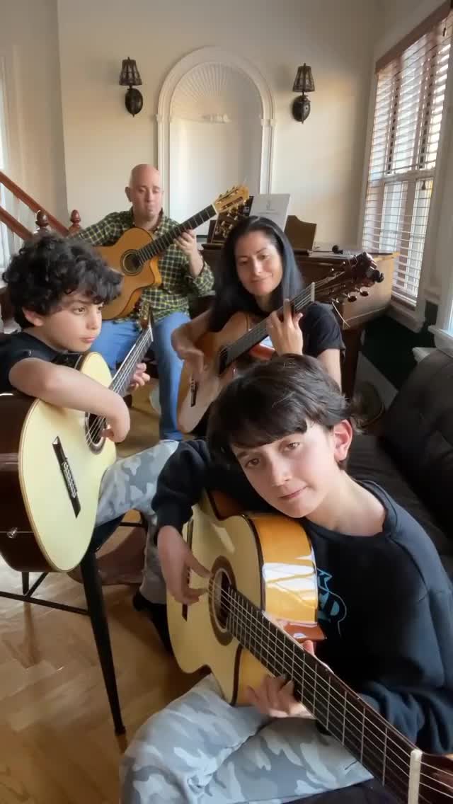 خانواده‌ ای که با گیتار گروه نوازی می‌کنند
