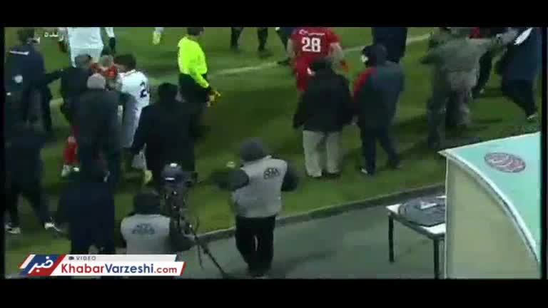 درگیری شدید نیمکت های تراکتور و فولاد در دقایق پایانی بازی