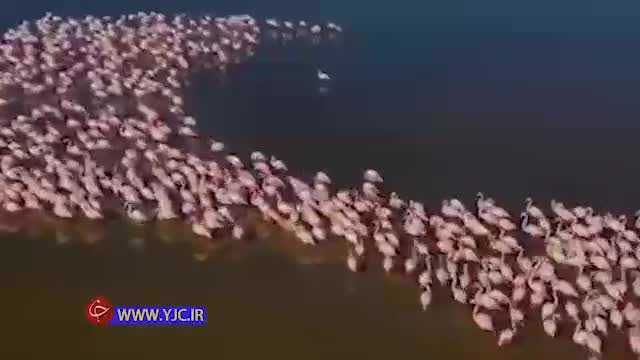 تصاویری زیبا از فلامینگوها در پناهگاه میانکاله