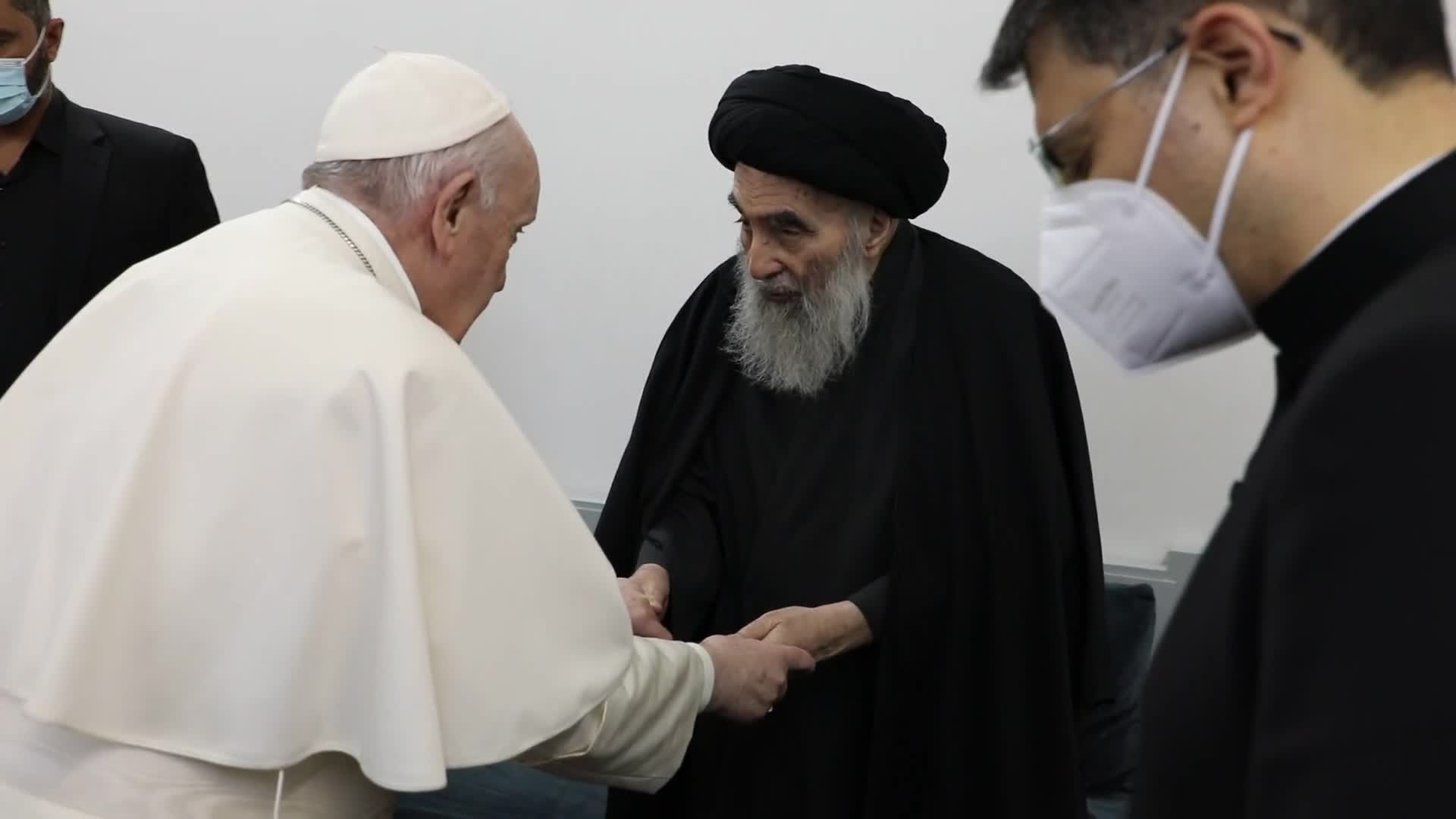 لحظه خداحافظی ایت الله سیستانی با پاپ فرانسیس
