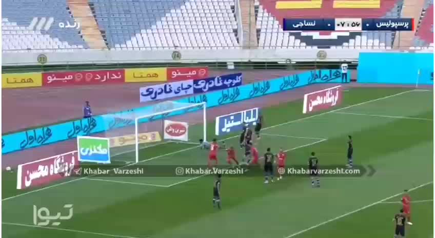 گل اول پرسپولیس به نساجی توسط کنعانی ‌زادگان