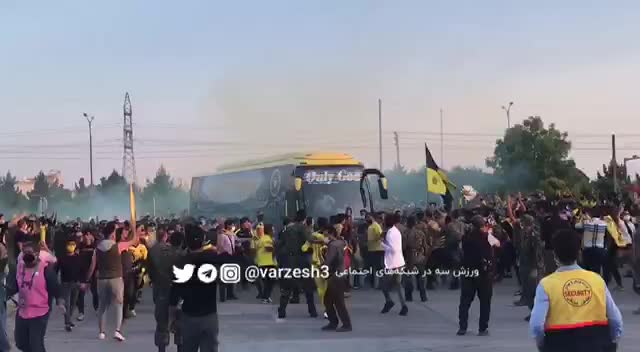 ورود اتوبوس تیم سپاهان به استادیم در میان استقبال گسترده هواداران
