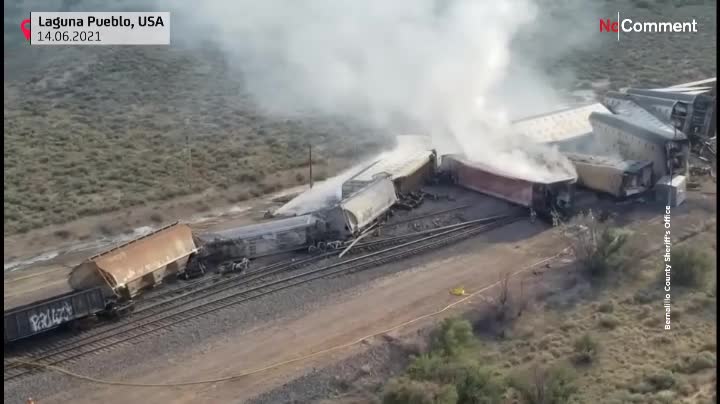 تصاویر هوایی از محل خروج یک قطار باری از مسیر در مکزیک