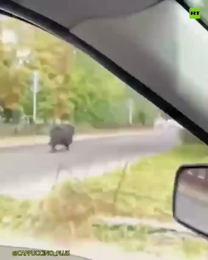 تصاویری از فرار یک گاومیش از کشتارگاه در روسیه به داخل شهر