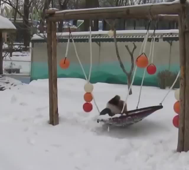 برف بازی دیدنی یک پاندا در باغ وحش چین