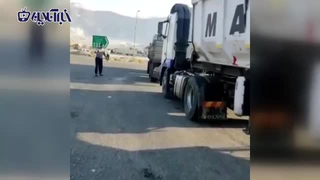 لرزش تریلی‌ ها در جاده در حین زلزله ۶/۴ ریشتری بندرعباس