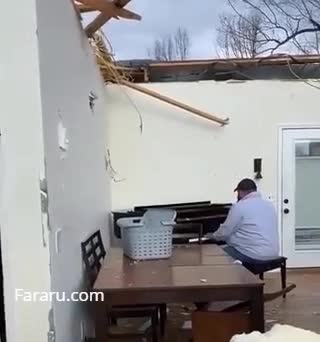 پیانو نوازی عجیب یک آمریکایی پس از طوفان !