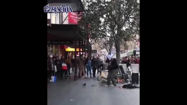 رقص جالب یک پرنده با ریتم گیتار نوازنده دوره‌گرد