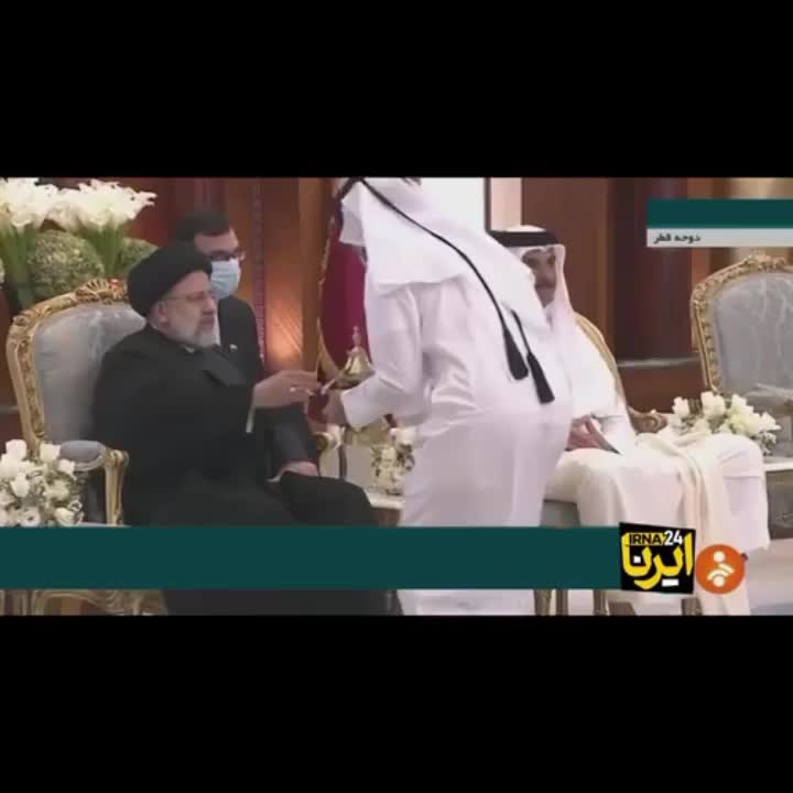 تعارف قهوه عربی به رئیسی در فرودگاه دوحه