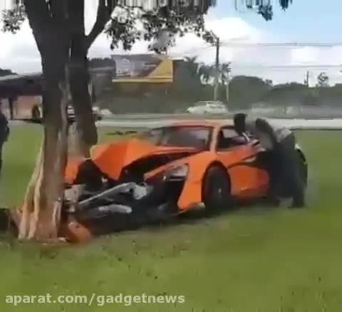 تصادف مک لارن ۲۵۰ هزار دلاری با درخت