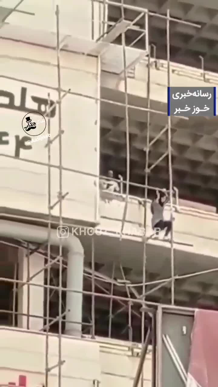 لحظه فرار شجاعانه دختر جوان آبادانی از طبقات بالای ساختمان متروپل
