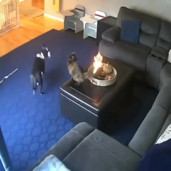 آتش گرفتن عجیب دم گربه هنگام دعوا با یک سگ