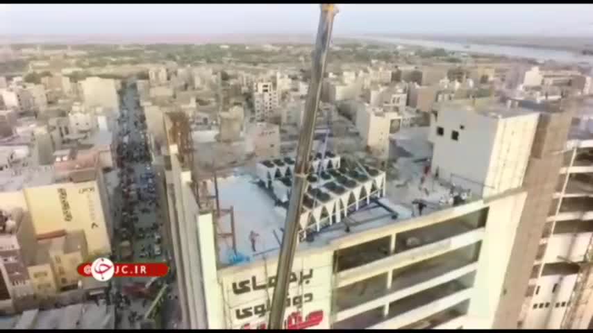 لحظه پایین آوردن چیلرهای ساختمان متروپل