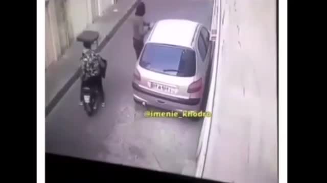 لحظه سقوط آزاد صاحب خودرو از پشت‌ بام به زمین برای فراری دادن سارقین