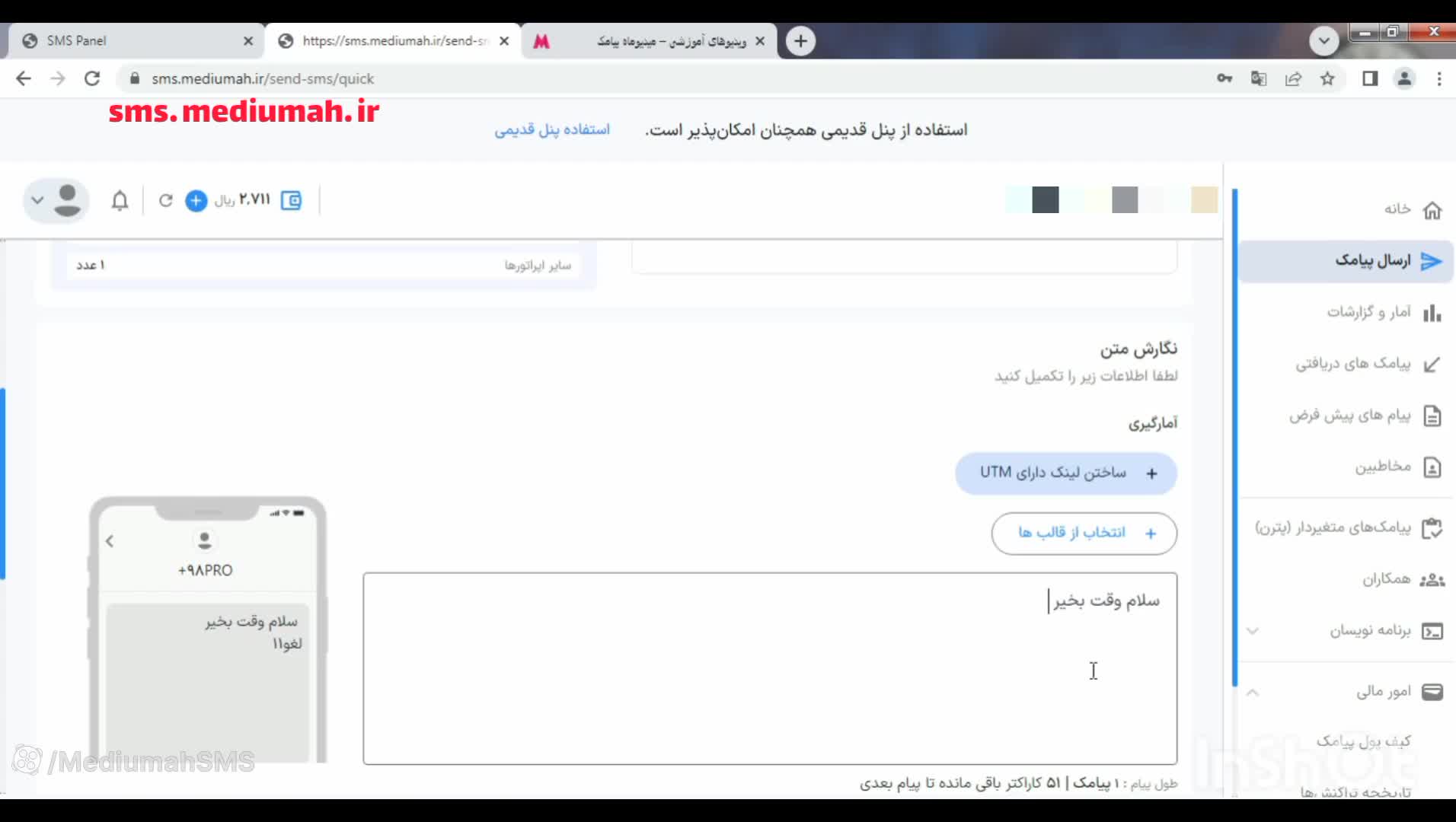 آموزش ارسال پیامک سریع با میدیوماه پیامک