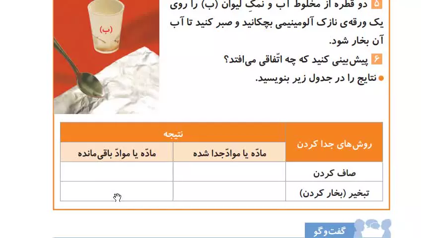 علوم کلاس چهارم دبستان - درس 2 مخلوط ها در زندگی - صفحه 12-13-14