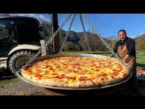 پیتزای غولپیکر روستایی آنقدر بزرگ که به بیل مکانیکی نیاز داشت