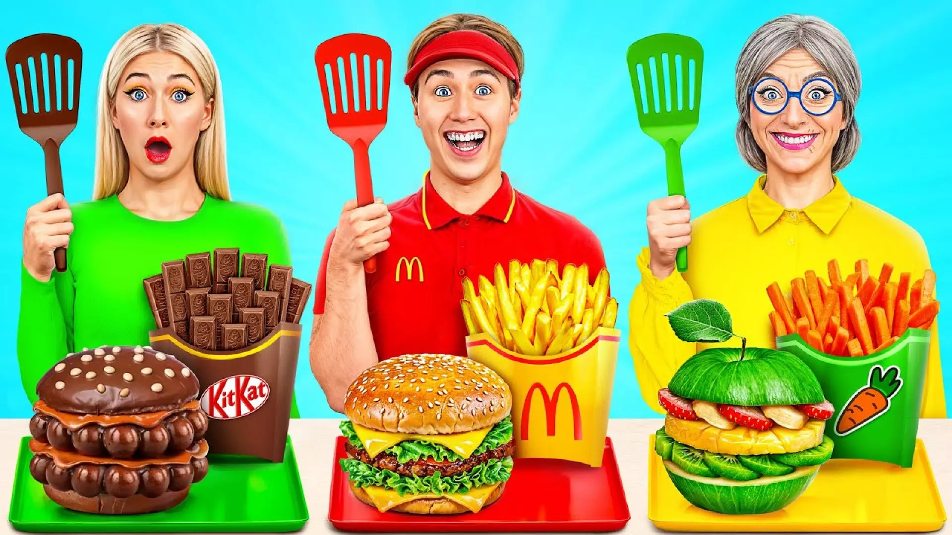 چالش غذاهاچالی رنگین کمانی /چالش خوردن با چوب غذاخوری/چالش سریع ترین غذا خور