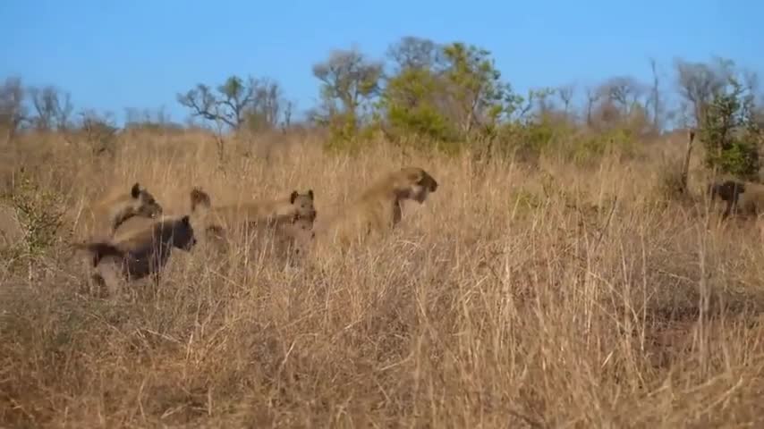 جنگ و نبرد شیرها با کفتارها در حیات وحش / گاز گرفتن پای شیر توسط گله کفتار