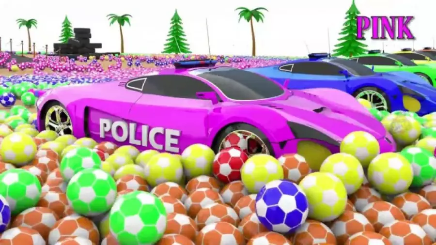 کارتون ماشین پلیس رنگی روی چرخ و فلک - ماشین بازی رنگی با توپ ها