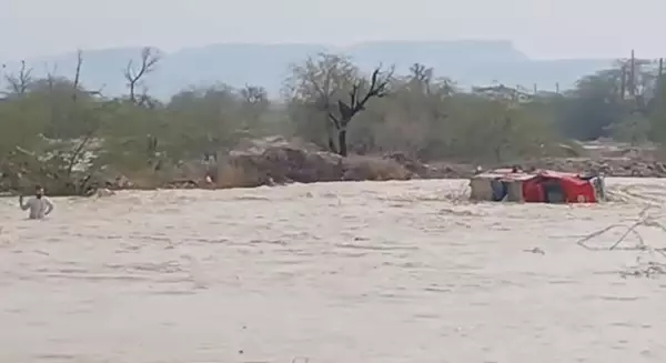 حادثه دلخراش غرق شدن خودرو در سیلاب پارسیان هرمزگان با یک فوتی