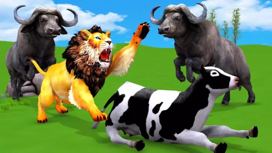 کارتون مبارزه با حیوانات گاو، بوفالو در مقابل شیر زامبی
