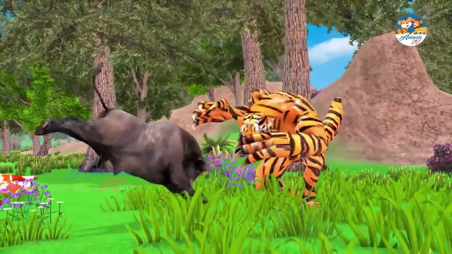 انیمیشن مبارزه با حیوانات | گاوهای غول پیکر در مقابل هیولا ببر گرگ