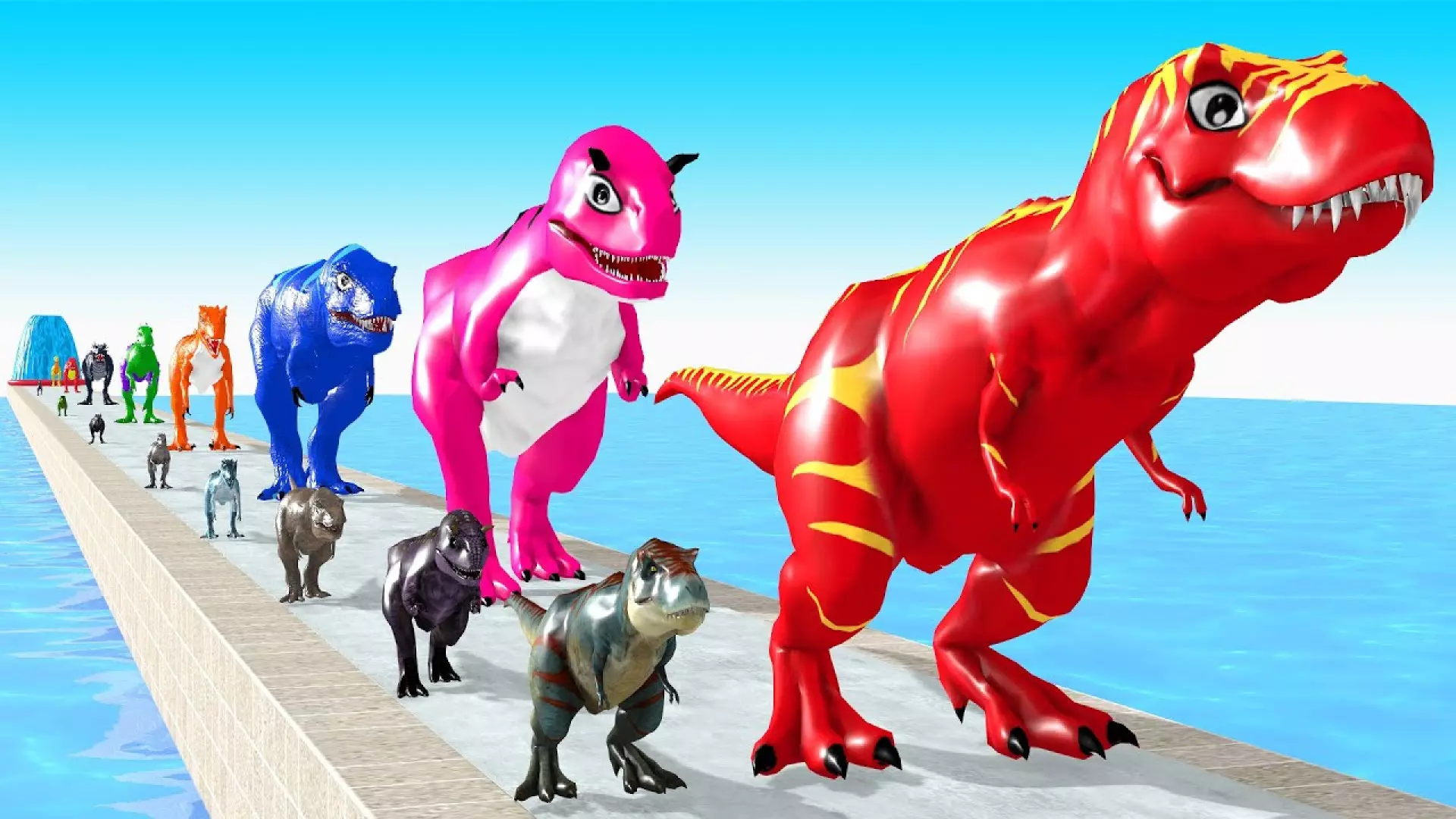 کارتون دایناسورها | دایناسور تی رکس گیاهخوار و عبور از فواره آب
