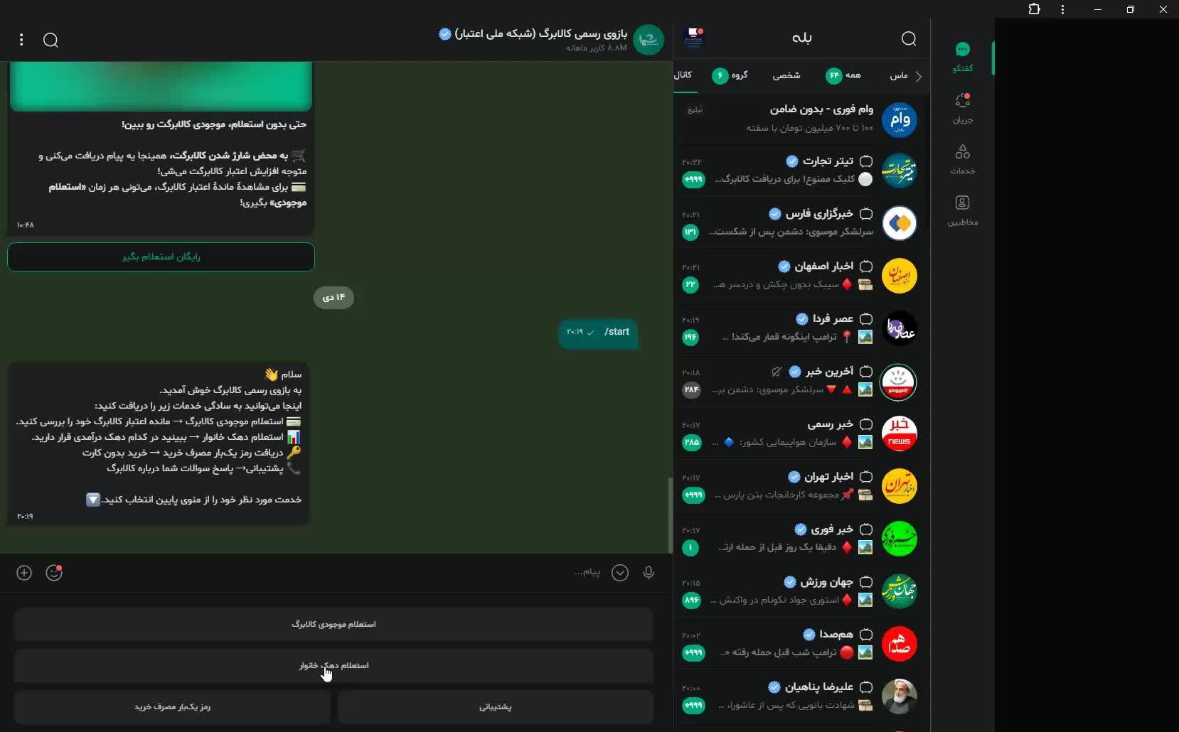 آموزش استعلام کالابرگ و یارانه در بله