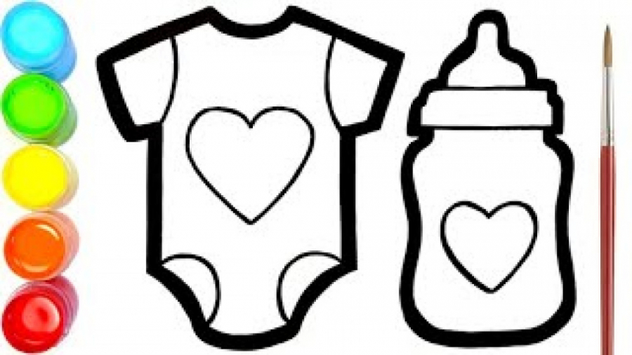 آموزش نقاشی به کودکان ؛ لباس نوزاد و شیشه شیر