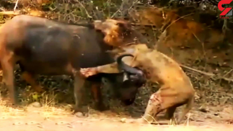 مرگ دلخراش شیر هنگام شکار بوفالو