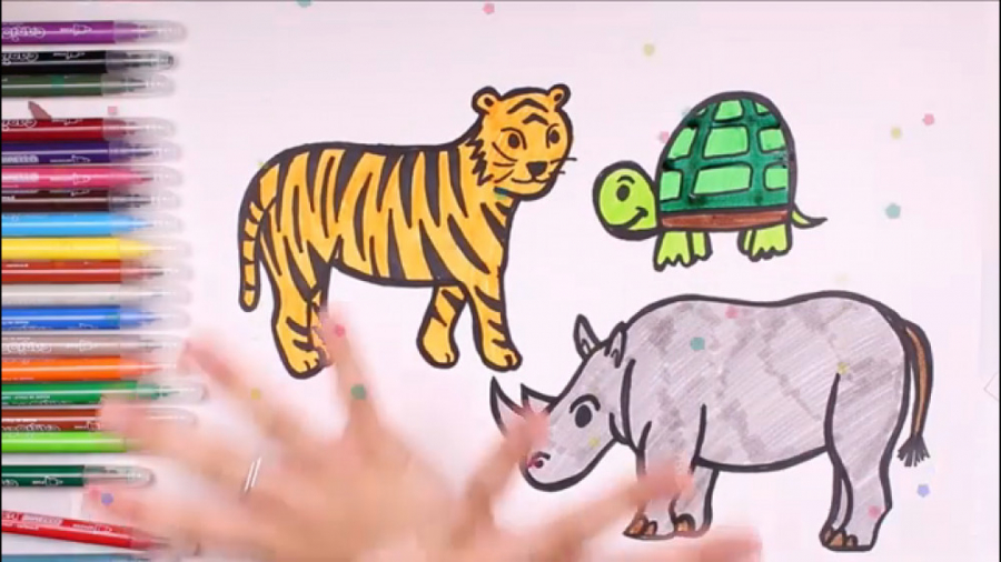 آموزش نقاشی به کودکان ؛ ببر، کرگدن و لاک پشت