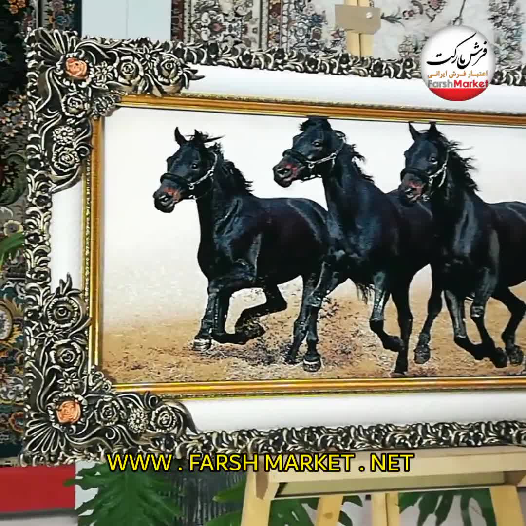 تابلو فرش اسب سیاه- فرش مارکت - خريد اينترنتي فرش کاشان