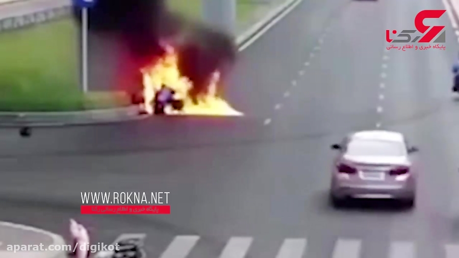 نجات ناباورانه یک پیک موتوری از زنده زنده سوختن در خیابان