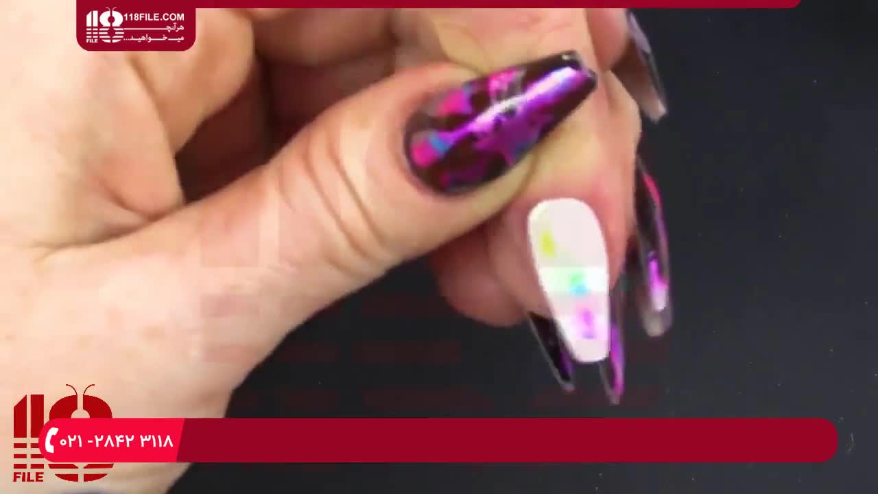 طراحی ناخن- طراحی پر با رنگ اکریلیک