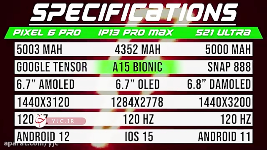 شکست باتری پیکسل ۶ پرو و گلکسی اس ۲۱ اولترا در مقابل آیفون ۱۳ پرومکس