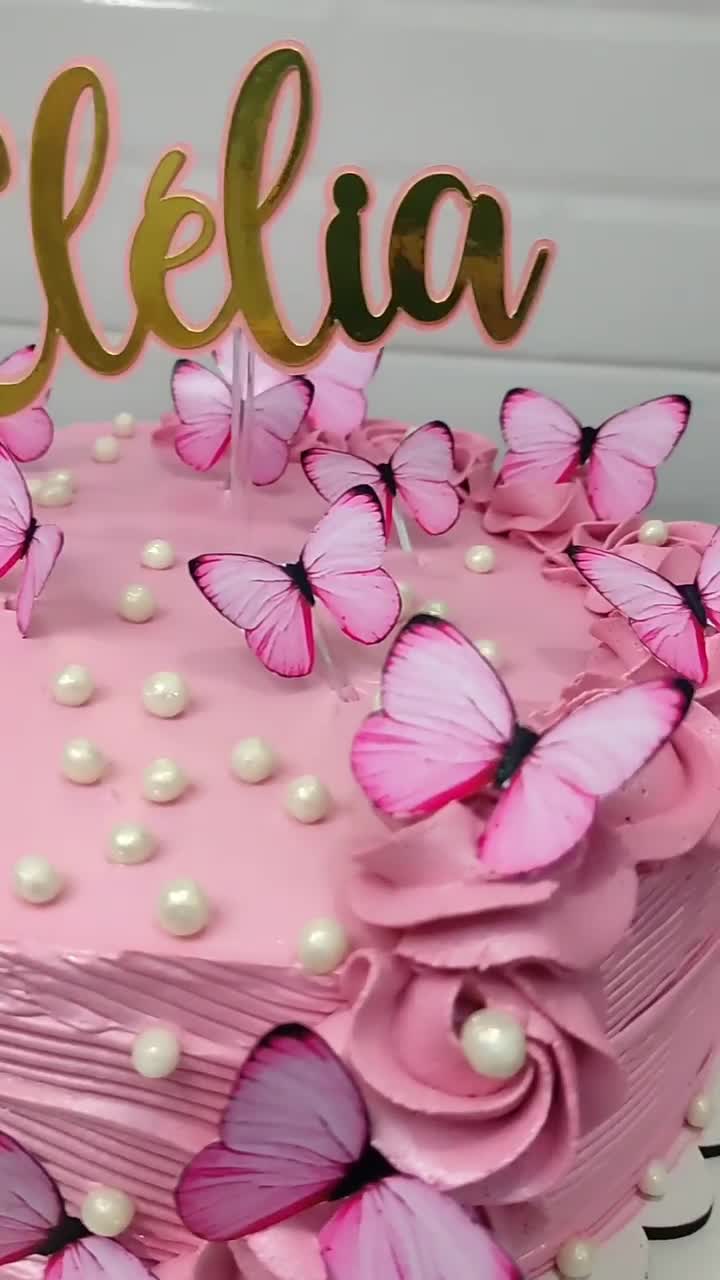 تزیین کیک با زمینه صورتی و پروانه های صورتی زیبا در مجله آشپزی هشتپا