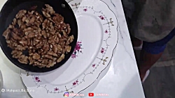 رولت خامه ای گردویی بدون آرد و شکر و کره با کرم نسکافه (قهوه) دسر رژیمی