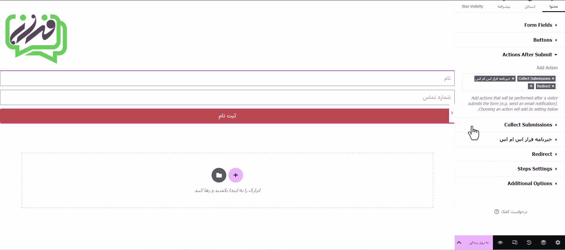 تنظیمات ارسال پیامک با افزونه پیامک المنتور رایگان فراز اس ام اس