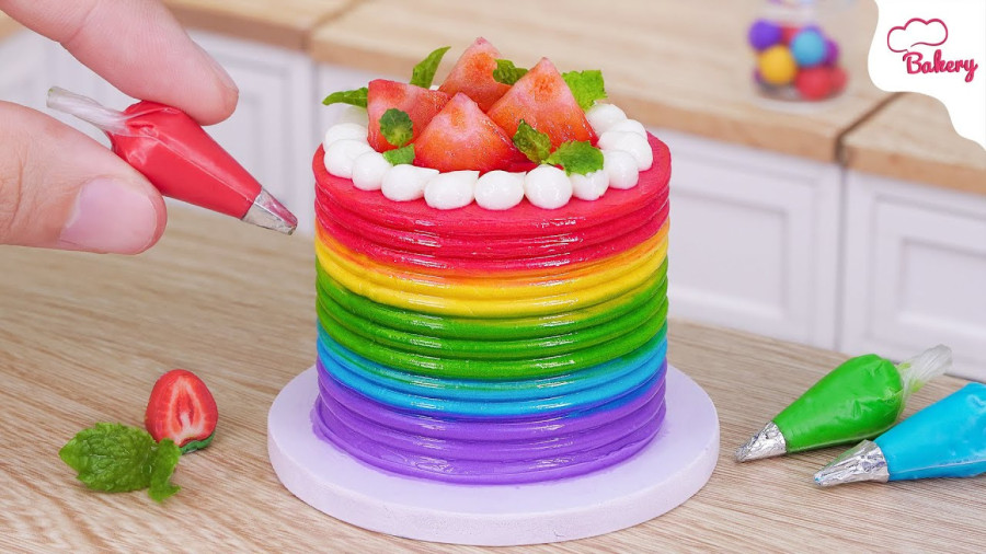 کیک رنگین کمان مینیاتوری با توت فرنگی