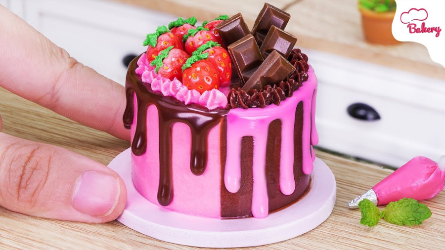 کیک توت فرنگی شکلاتی و صورتی مینیاتوری