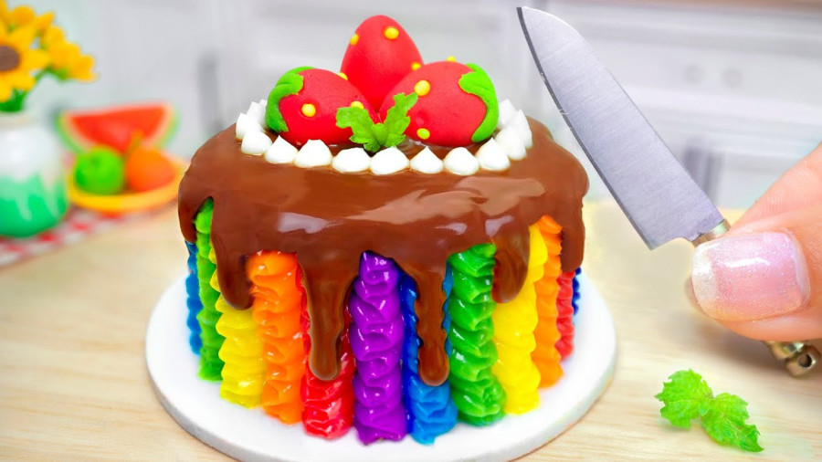 کیک شکلاتی توت فرنگی رنگین کمانی مینیاتوری