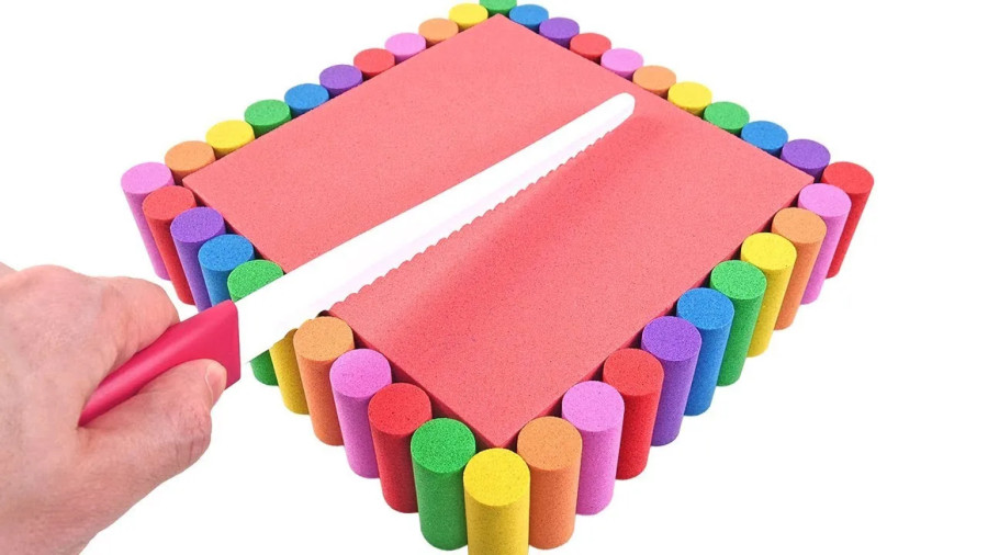 شن رنگی - شن بازی کودکانه - کیک مربع رنگی با شن جنبشی - بازی و سرگرمی کودکانه