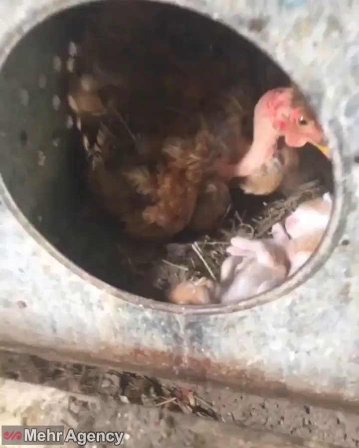 شگفتی_حیوانات مراقبت شگفت انگیز یک مرغ ازبچه گربه ها