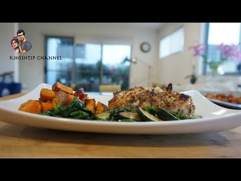 آموزش آشپزی - طرز تهیه مرغ خردلی گریل شده به همراه کدو و اسفناج
