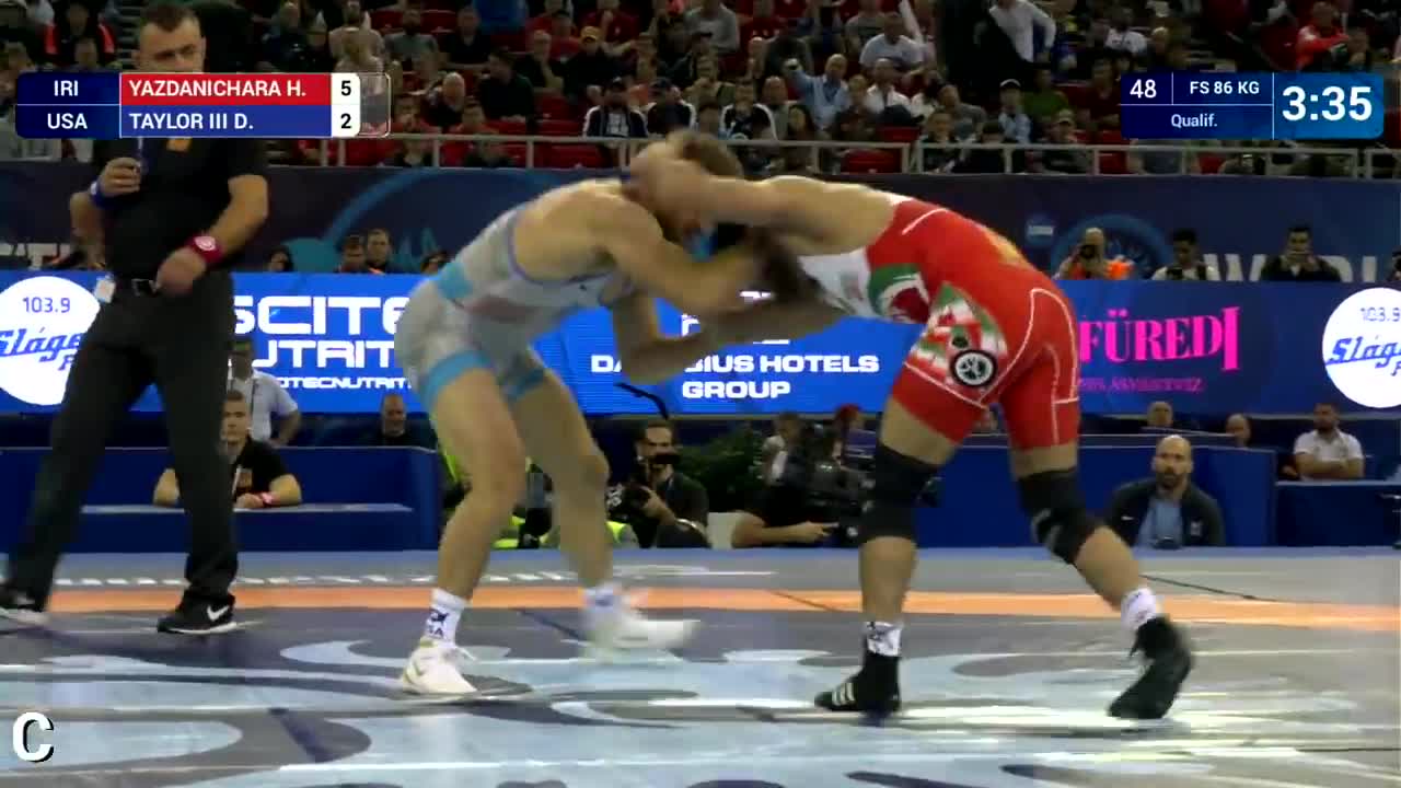مبارزه کشتی حسن یزدانی در مقابل تیلور آمریکایی
